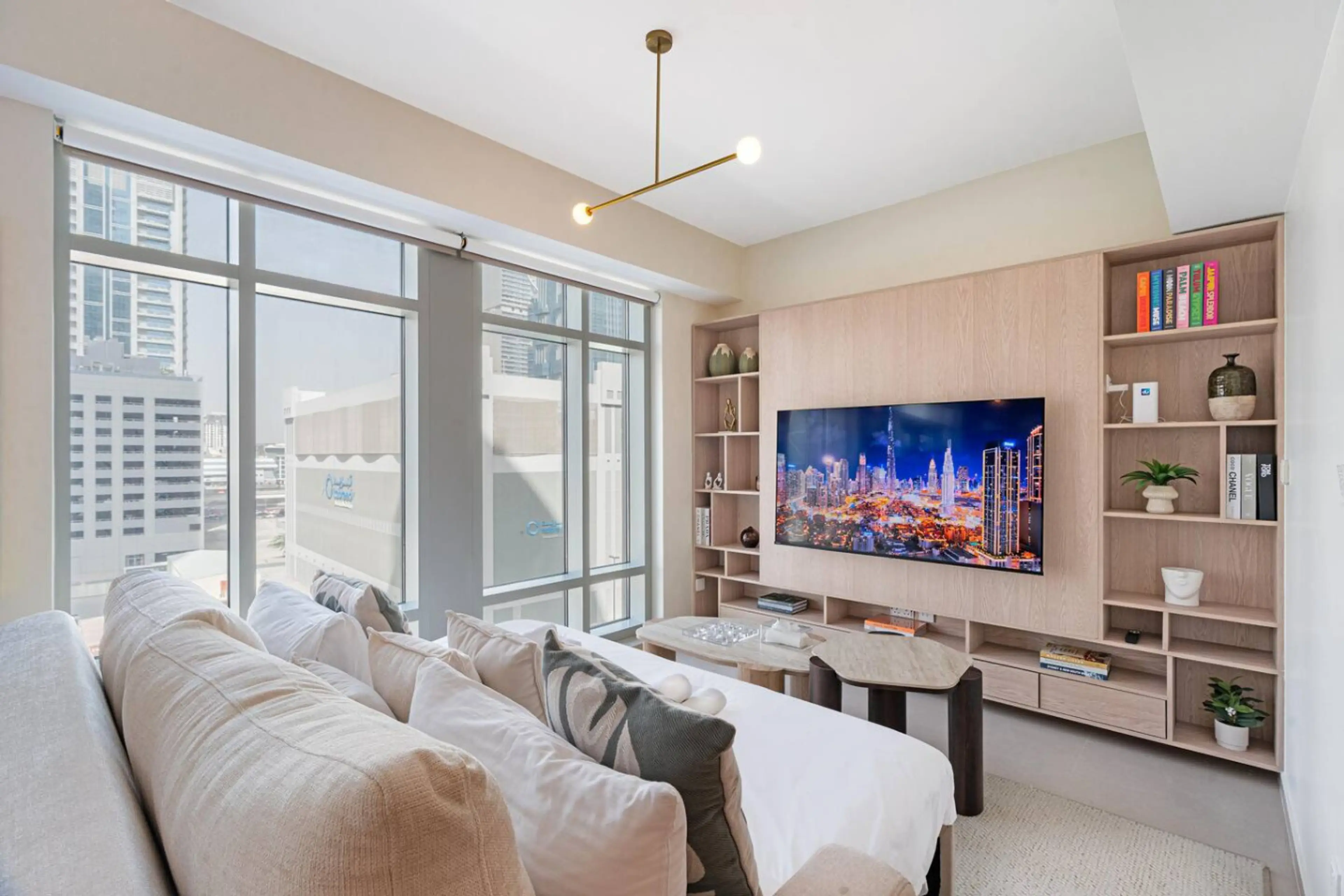 Experience modern urban living in this chic 1-bedroom at The Lofts Central, Downtown Dubai. Perfectly designed for 4 guests, it features a plush sofa bed, a fully equipped kitchen with a dishwasher, and a spacious dining area. Enjoy floor-to-ceiling city views, a dedicated dressing table, and premi...