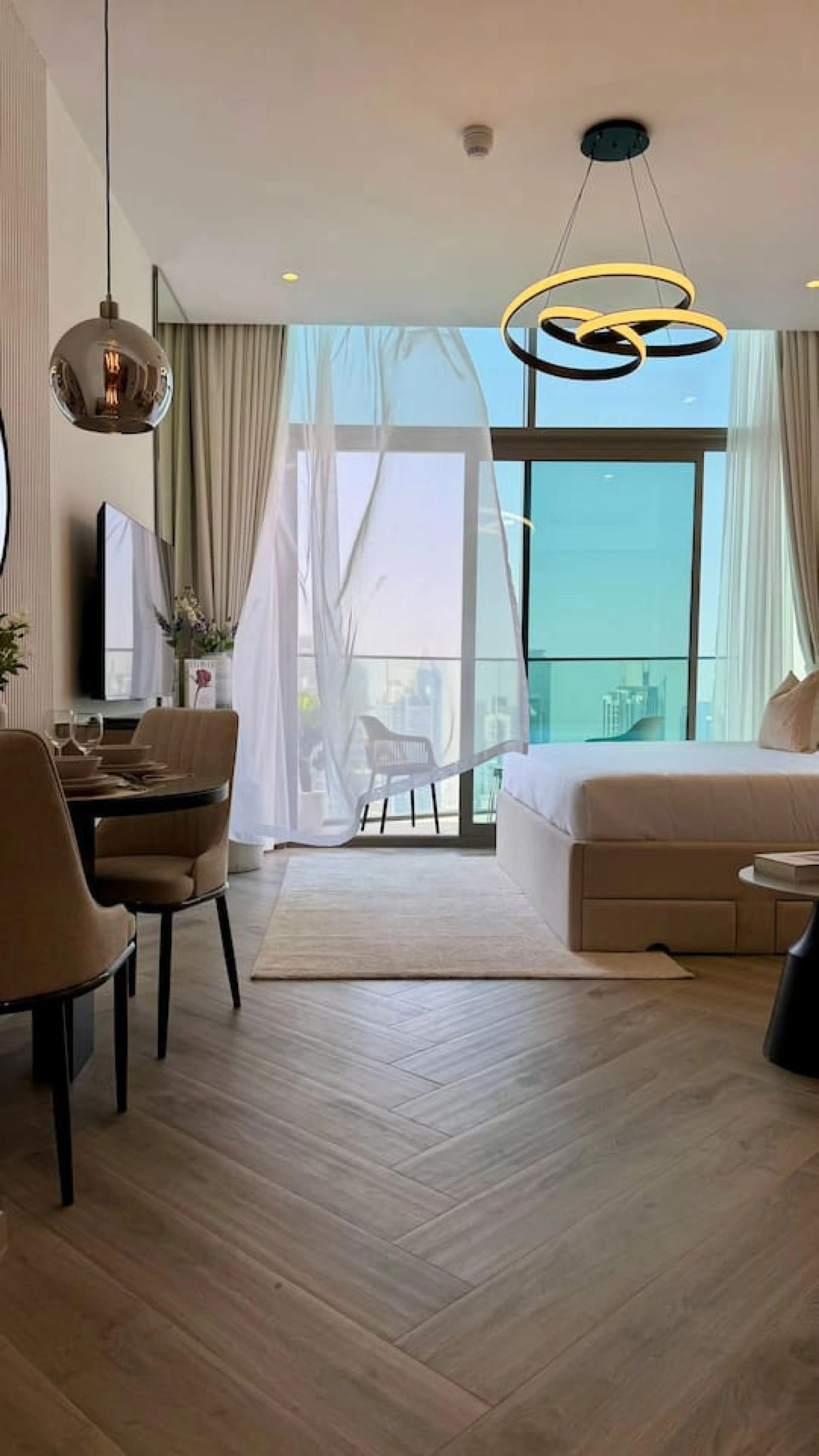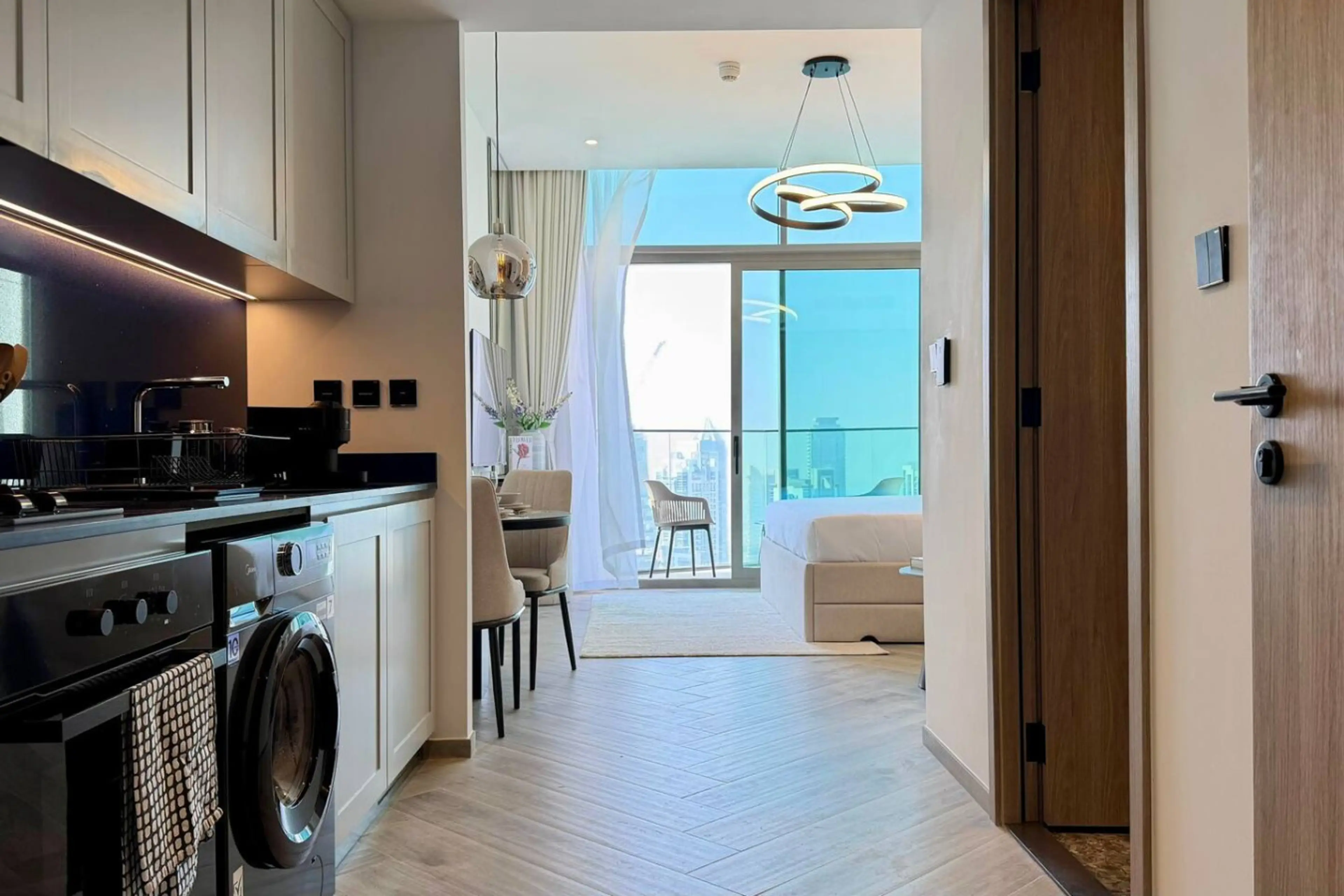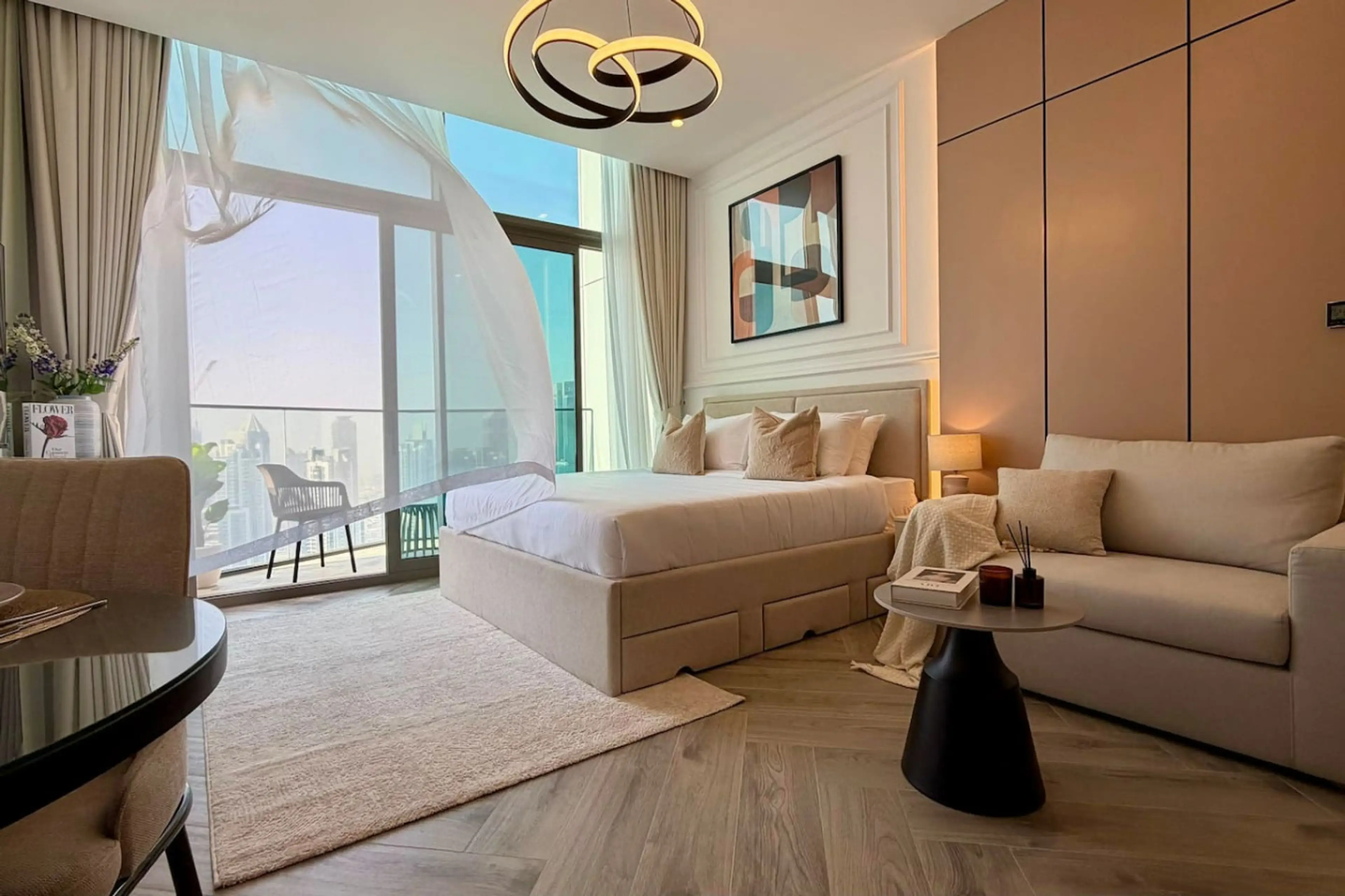 Experience elevated living in this brand-new, 49th-floor sanctuary at Peninsula 3. Spanning a generous 422 sq ft, this chic studio features a plush king bed and a private balcony offering breathtaking, front-row views of the Downtown skyline and Burj Khalifa. Enjoy world-class amenities including a ...